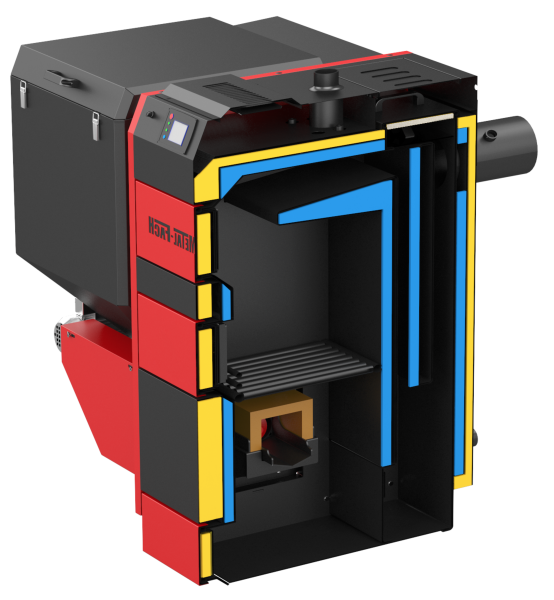 Оснащены бункером с автоматической подачей топлива, вентилятором наддува и электроникой, которая управляет процессом горения.