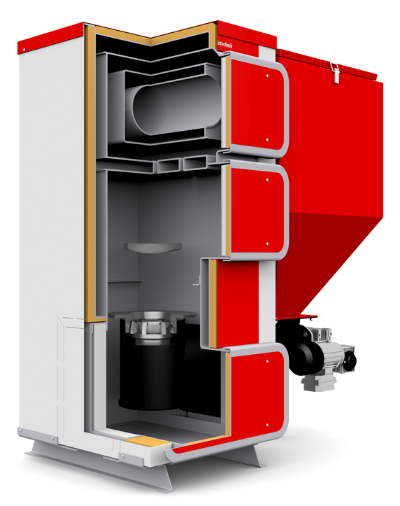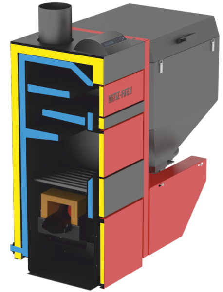 Оснащены бункером с автоматической подачей топлива, вентилятором наддува и электроникой, которая управляет процессом горения.